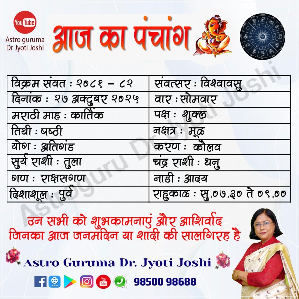 आपका आज का दिन मंगलमय, भाग्यमय, सुखमय रह सकता हैं। आज के दिन भाग्य और नसीब का साथ मिलेगा। नौकरी के कारण कुछ नए लोगों से मुलाकात होगी। आज के दिन का अधिकतम लाभ उठाएं।